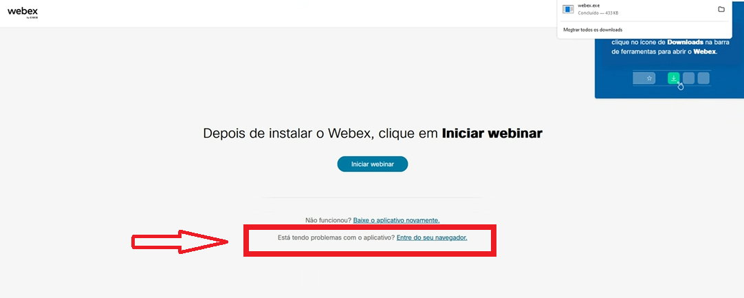 O evento será realizado na plataforma Webex Webinar. Não é necessário instalar o Webex para assistir ao evento. Você pode usá-lo clicando em "Entre pelo seu navegador".